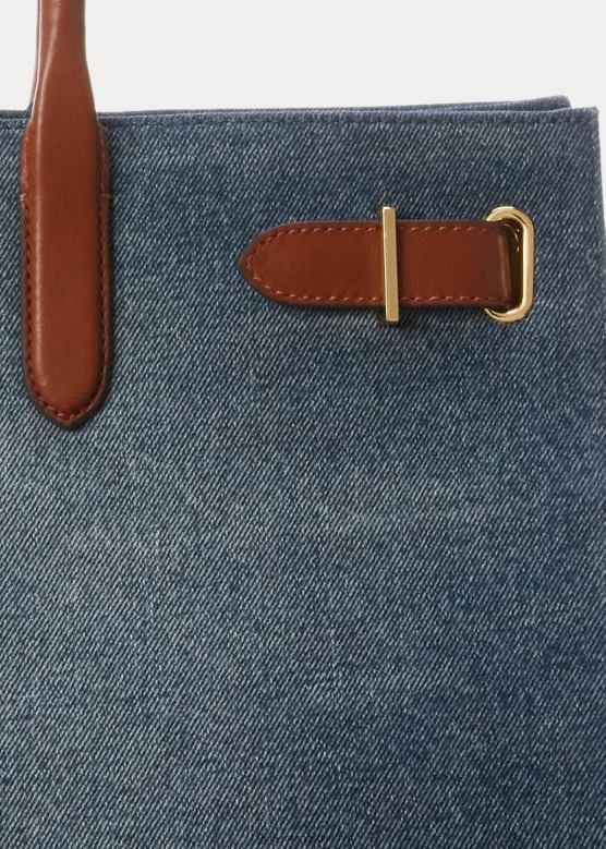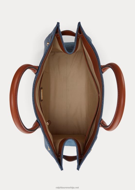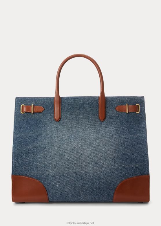 Жене Ralph Lauren деним велика девин торба са кожним украсима V2V445426 залазак сунца индиго прање