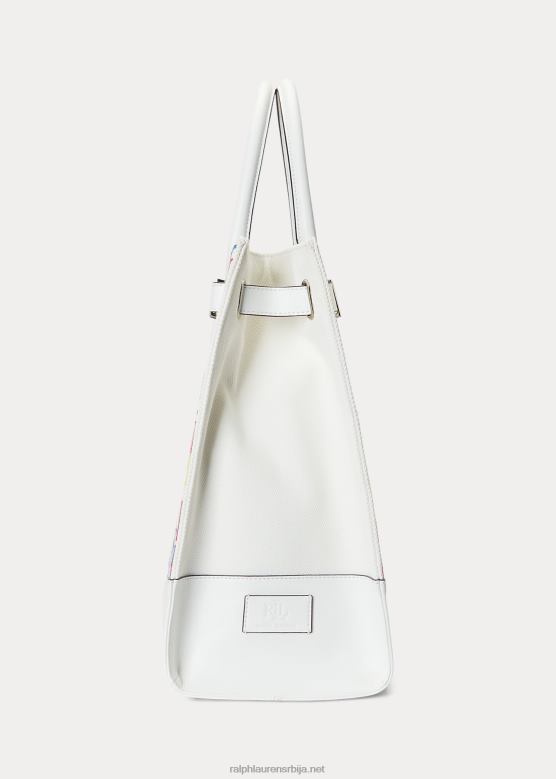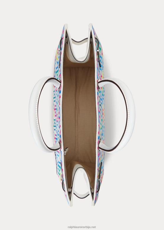 Жене Ralph Lauren извезена платнена велика девин торба V2V445425 вишебојни лого/бело