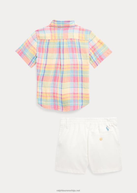 беба Ralph Lauren карирана ланена кошуља и кратки сет V2V447771 жуто/црвено мулти
