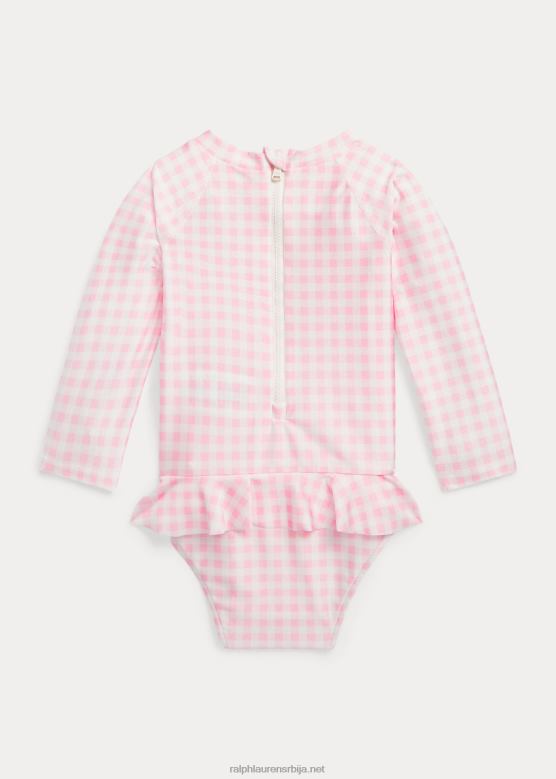 беба Ralph Lauren једноделни штитник од осипа са набораним наборима V2V447949 кармел розе