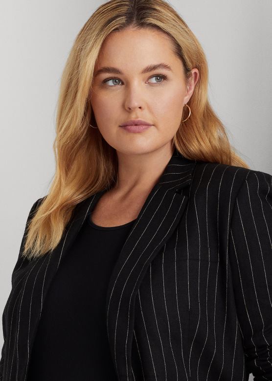 Жене Ralph Lauren блејзер од мешавине лана у пругама V2V444777 црна/крем