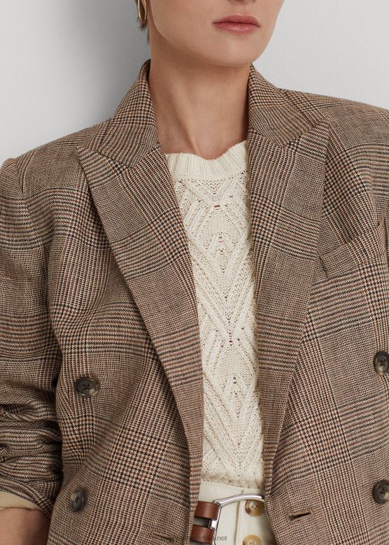 Početna| Жене| одећу| блејзери| Жене Ralph Lauren глен карирани платнени сако са двоструким копчањем V2V444095 браон/крем мулти