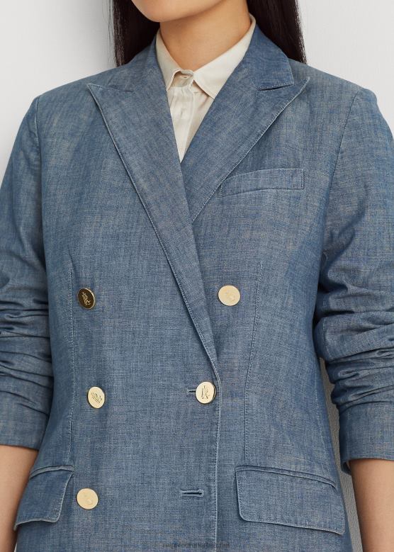Жене Ralph Lauren двоструки шамбре блејзер V2V443959 берил плаво прање