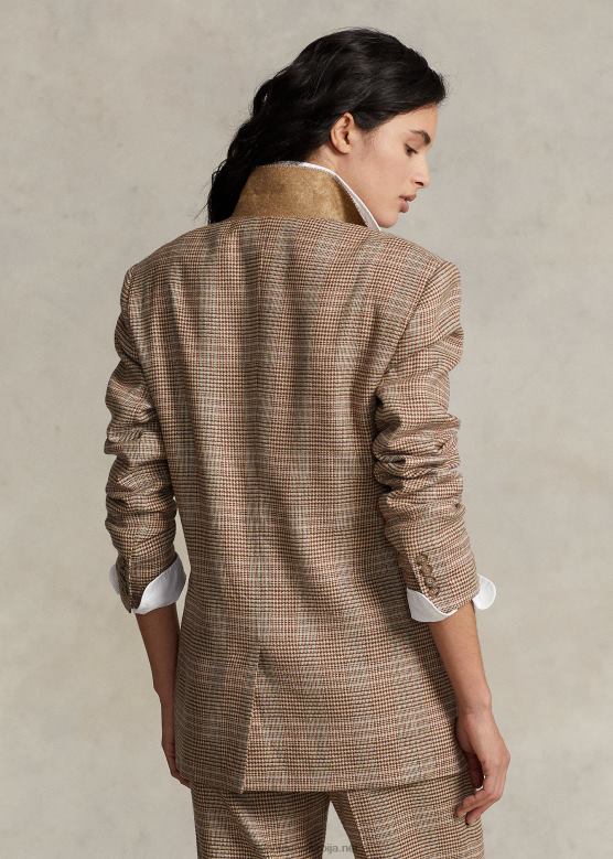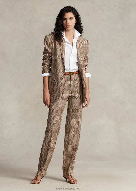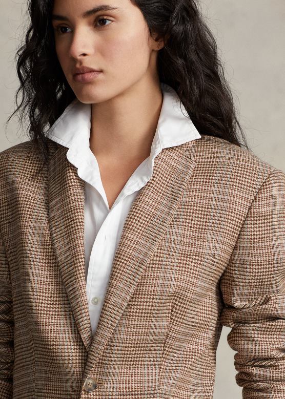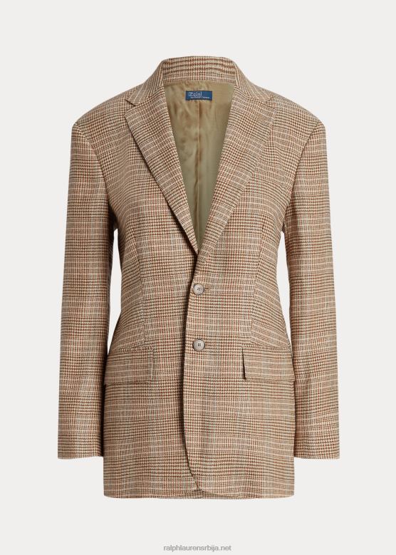 Жене Ralph Lauren карирани блејзер од вуне и лана од твида V2V449193 браон розе кариран