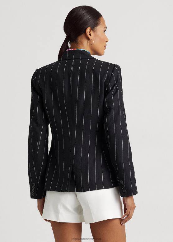 Жене Ralph Lauren ланени блејзер на пруге V2V444347 црна/крем