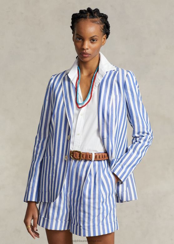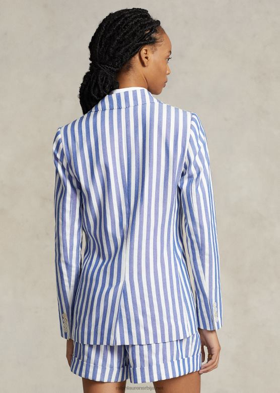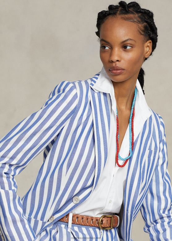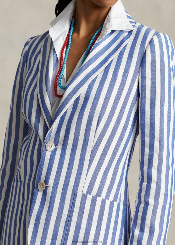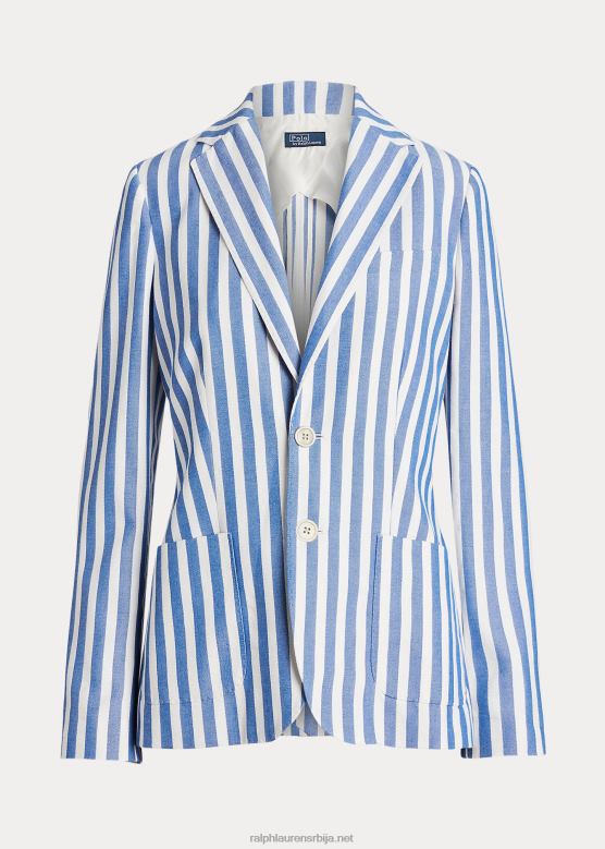 Жене Ralph Lauren пругасти памучно-ланени доби блејзер V2V443086 плава/бела трака за тенду