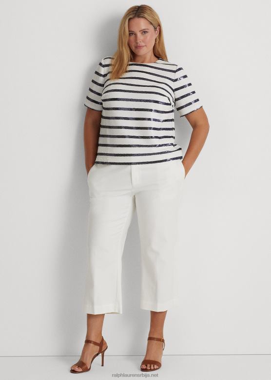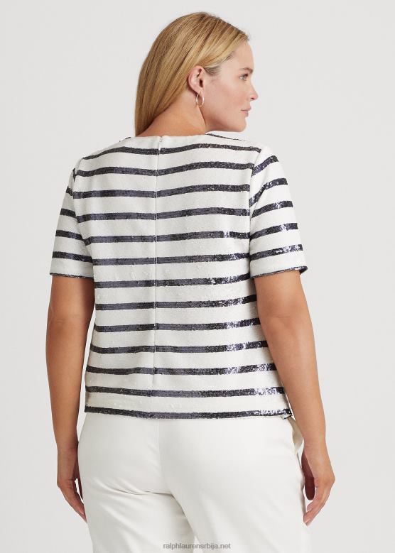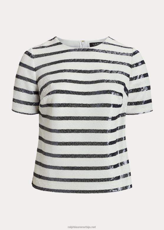 Жене Ralph Lauren пругаста блуза кратких рукава са шљокицама V2V444798 бела/префињена морнарица