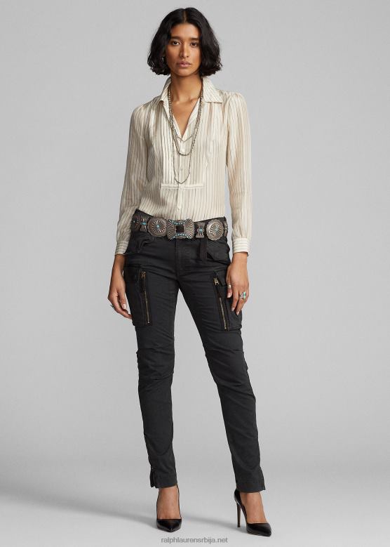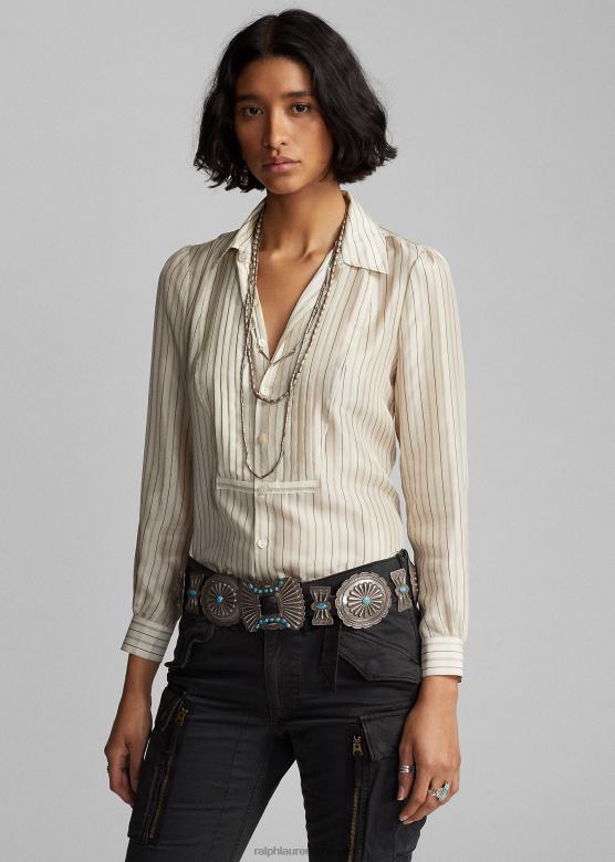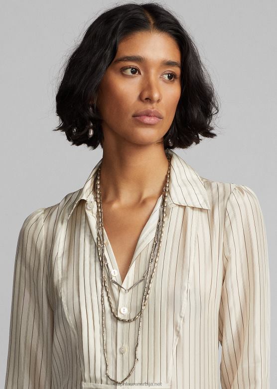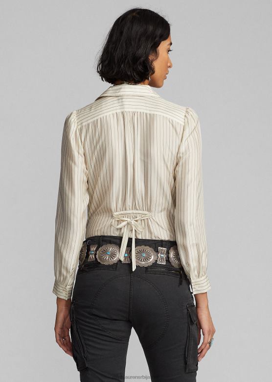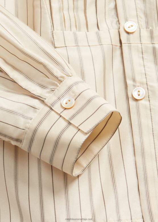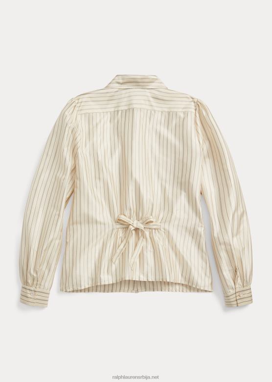 Жене Ralph Lauren пругаста свилена блуза са везањем V2V443633 крем/црна