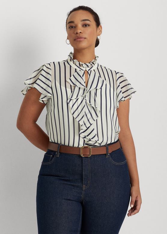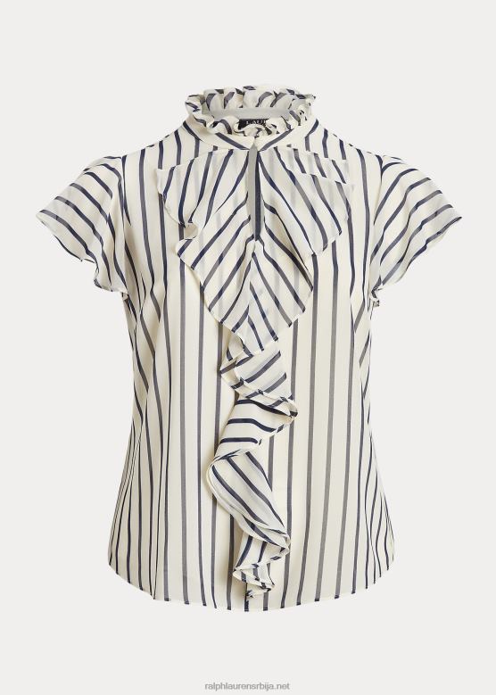 Жене Ralph Lauren пругаста шифонска блуза са воланима V2V444655 пергамент крем / морнарица