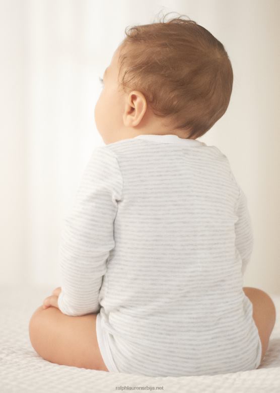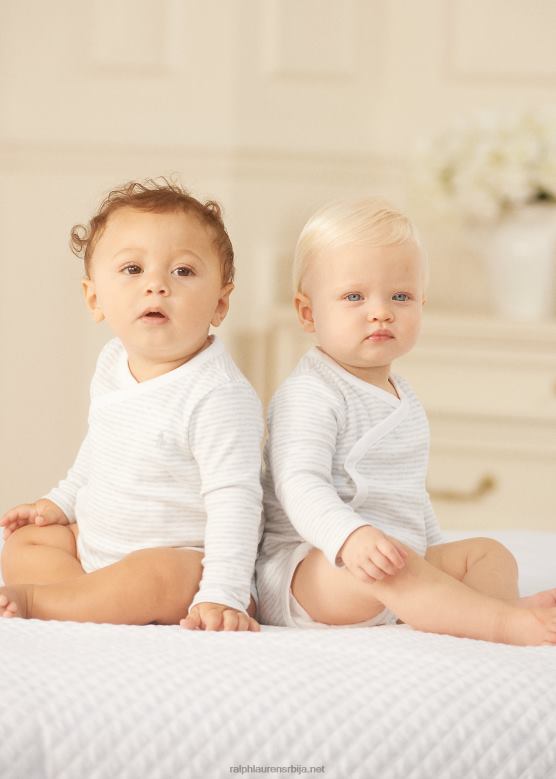 беба Ralph Lauren пругасти памучни боди с в-изрезом V2V448163 кварц вријесак/бела