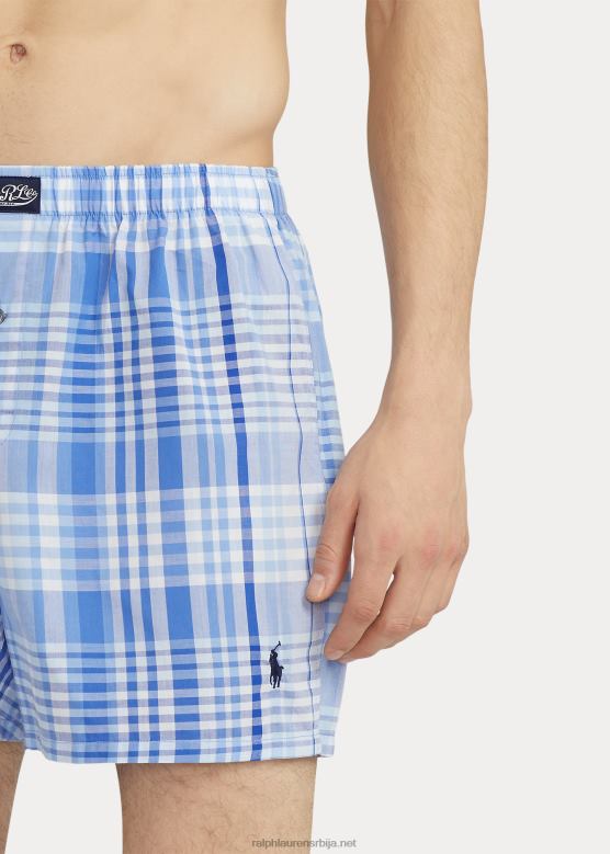 мушкарци Ralph Lauren памучни комплет боксерица са отвореним изрезом и карираним изрезима V2V44874 карирана морнарица/наслеђе краљевско