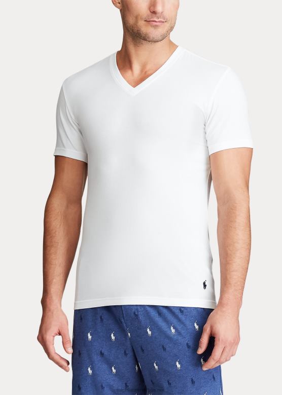 мушкарци Ralph Lauren танка растезљива поткошуља с в-изрезом 3 ком V2V44407 бео