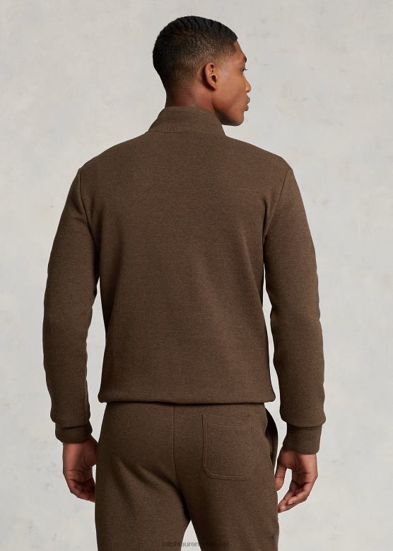 мушкарци Ralph Lauren дупло плетени мрежасти пуловер са четвртим патентним затварачем V2V441065 мушкатни орашчић браон вријесак