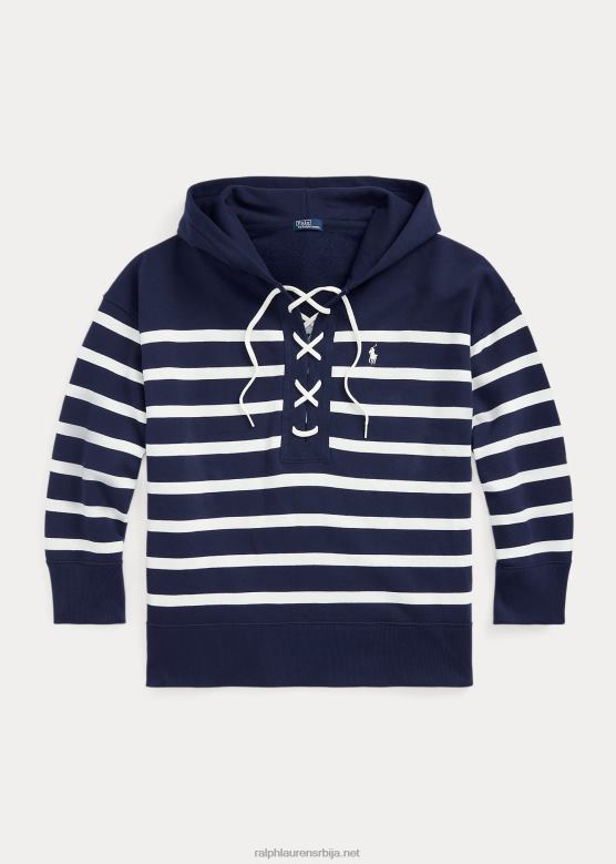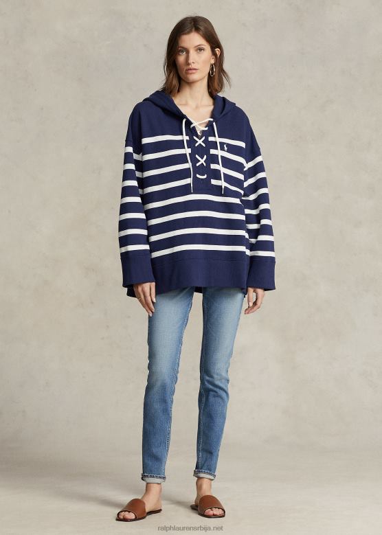 Жене Ralph Lauren пругасти пуловер од флиса на пертле V2V443044 невпорт морнарско/бела