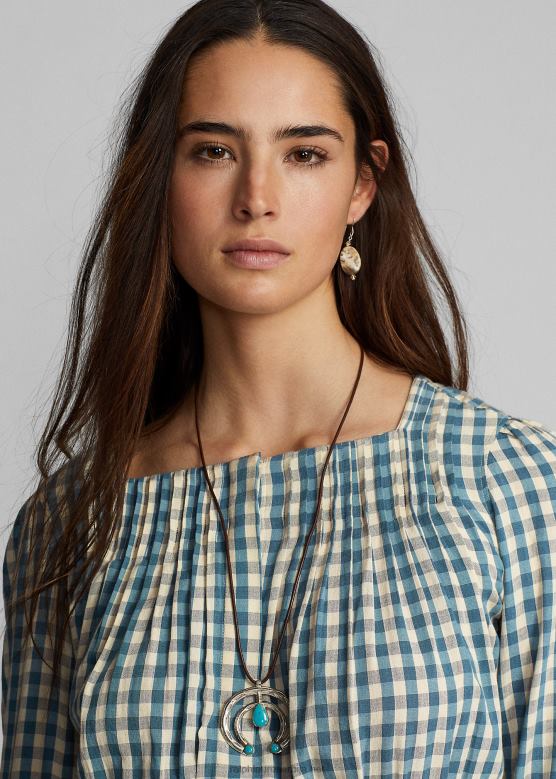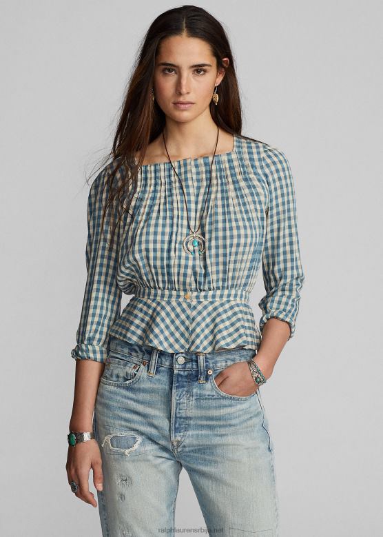 Жене Ralph Lauren блуза од гингхам воиле пеплум V2V443637 крем/плава