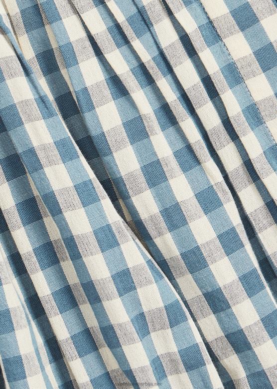 <п><п>направљен од лаганог гингхам воила. инспирисан блузом с почетка 20. века. дизајнирана са квадратним изрезом, рукавима до наруквице и пеплумом у струку. детаљан са ушивањем на предњим и задњим јармовима и шишањем. завршена оригиналним седефастим дугмадима.<п>п>