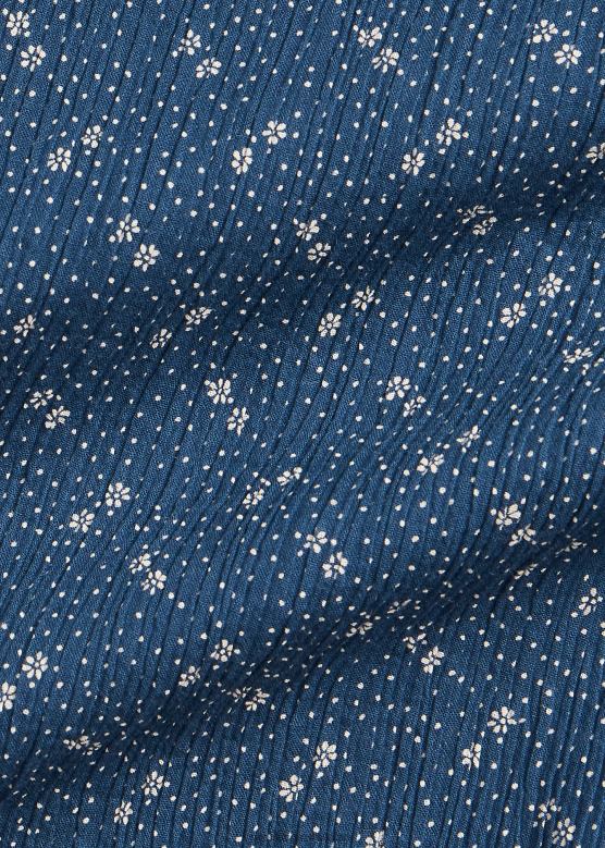 <п><п>блуза од лаганог набораног памучног воала. цветни мотив инспирисан новим принтом са почетка 20. века. шиљање на предњем и задњем јарму. скупљени рукави дужине наруквице. равни поруб. завршена седефастим дугмадима.<п>п>
