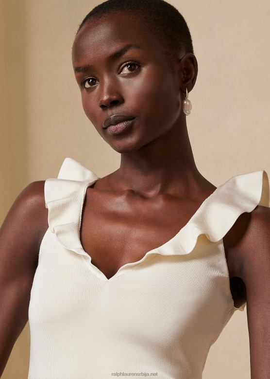 Жене Ralph Lauren џемпер без рукава од мешавине свиле са В-изрезом V2V443502 лук крема