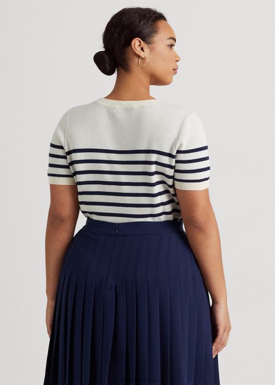 Жене Ralph Lauren џемпер кратких рукава на пруге са логотипом V2V444629 маскарпоне крем/плава