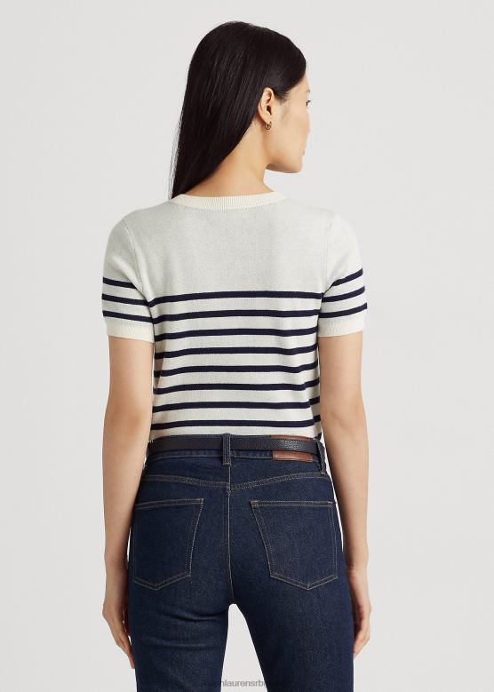 Жене Ralph Lauren џемпер кратких рукава на пруге са логотипом V2V449479 маскарпоне крем/плава