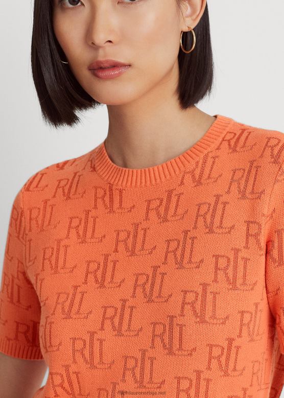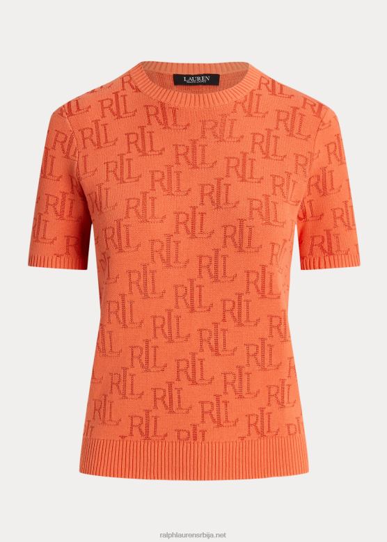Жене Ralph Lauren џемпер кратких рукава од жакарда са монограмом V2V443787 кањонска наранџаста