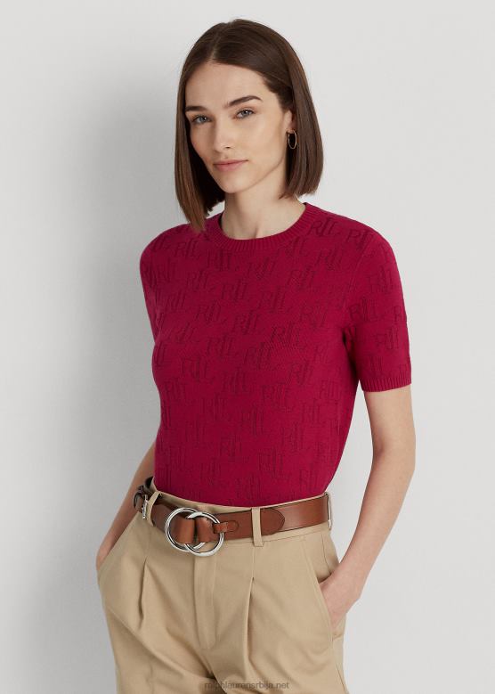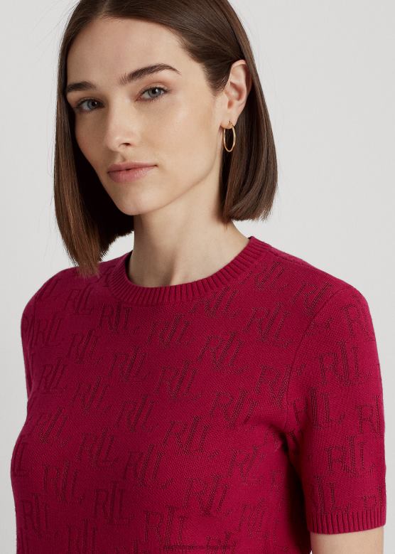 Жене Ralph Lauren џемпер кратких рукава од жакарда са монограмом V2V444290 бобице фуксије