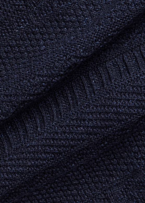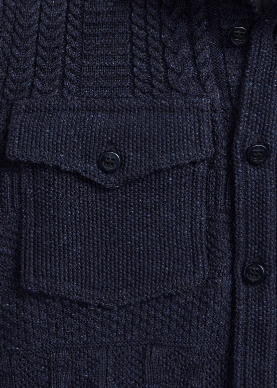 <п><п>Џемпер хаљина плетена од мешавине вуне и памука. инспирисан вишком одеће из 40-их. замршено плетене гернзи узорком користећи разне шавове. Силуета кошуље има крагну у облику тачака, предњи део на дугмад и поруб кошуље. завршен са ојачањима од кепера у унутрашњости и урезаним дугмадима. долази са самопојасом.<п>п>