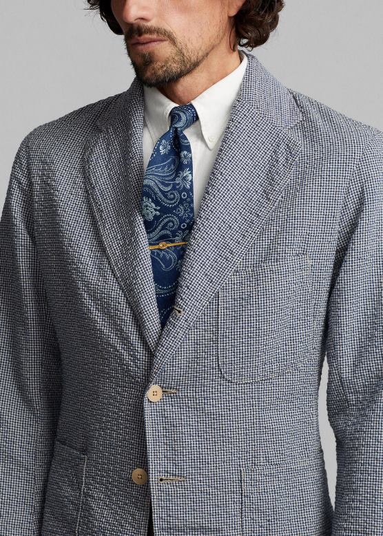мушкарци Ralph Lauren неконструисани сеерсуцкер спортски капут V2V441719 плава/крем