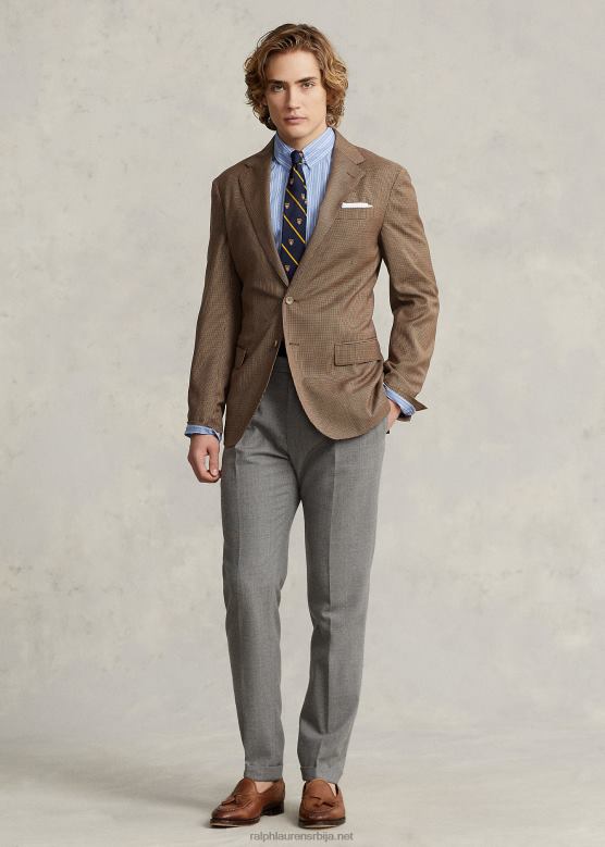 <п><п>Поло мекани крој даје модеран стил класичном преппи стилу са природним раменом и конструкцијом од пола платна. ова верзија је направљена од финог вуненог кепера и има безвремени узорак псеће зубе.<п>п>
