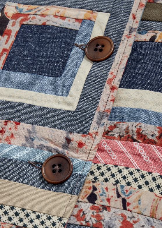 <п><п>патцхворк капут састављен од дезена и памучних тканина чврстих нијанси. дизајниран са аеродинамичном силуетом прашине. потпуно обложен. завршен са корозо дугмадима.<п>п>