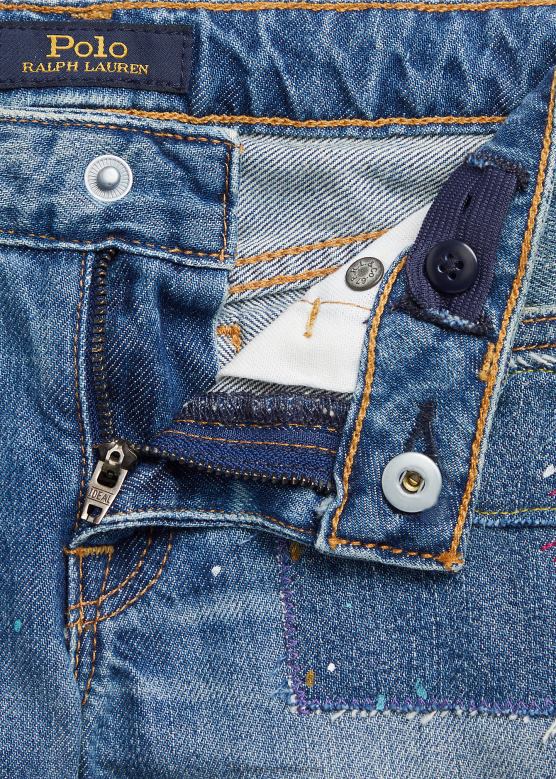 <п><п>Ове лагане фармерке су кројене по нашем танком дечку, а имају поправке од крпица и уметнички мотив прскања боје.<п>п>