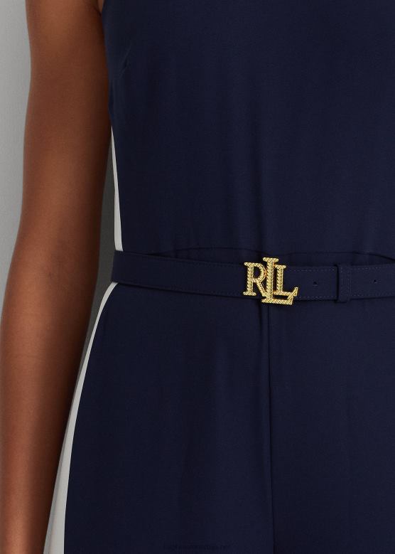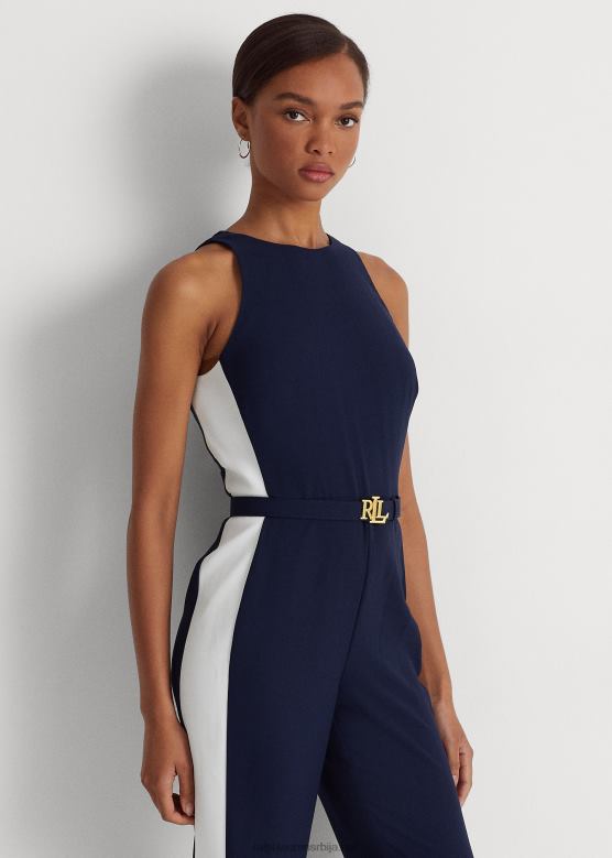 Жене Ralph Lauren креп комбинезон са бочним тракама V2V449564 префињена морнарско/бела