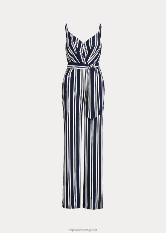 Жене Ralph Lauren креп комбинезон са пругама са каишем V2V449539 морнарско/бела