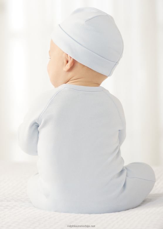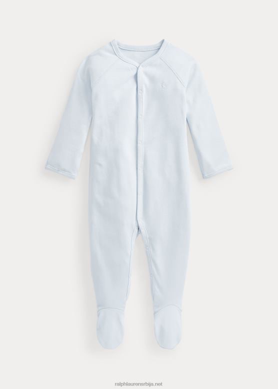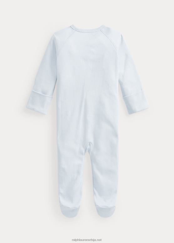 беба Ralph Lauren памук интерлоцк комбинезон са стопалима V2V447726 берил плава