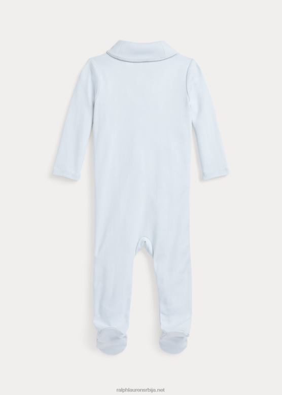 беба Ralph Lauren памук интерлоцк комбинезон са стопалима V2V447752 берил плава