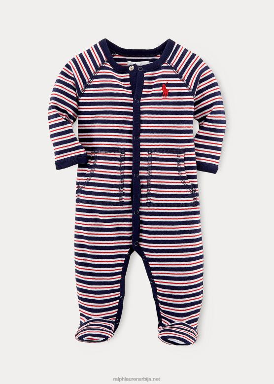 беба Ralph Lauren пругасти комбинезон са памучним стопалима V2V447723 рафинирани морнарички мулти