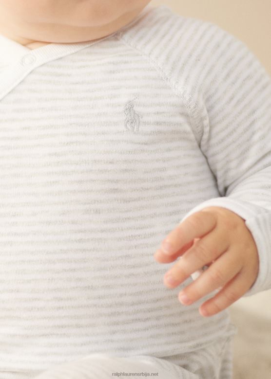беба Ralph Lauren пругасти комбинезон са памучним стопалима V2V447733 кварц вријесак/бела