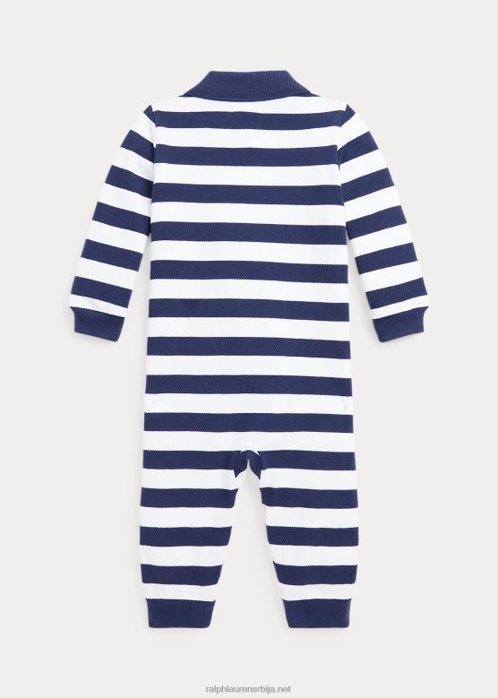беба Ralph Lauren пругасти памучни мрежасти поло комбинезон V2V448168 рустикална морнарица/бела