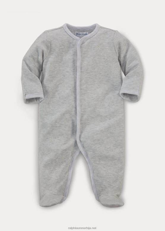 беба Ralph Lauren тонал поло пони комбинезон са памучним стопалима V2V4410016 кварц сиви вресак