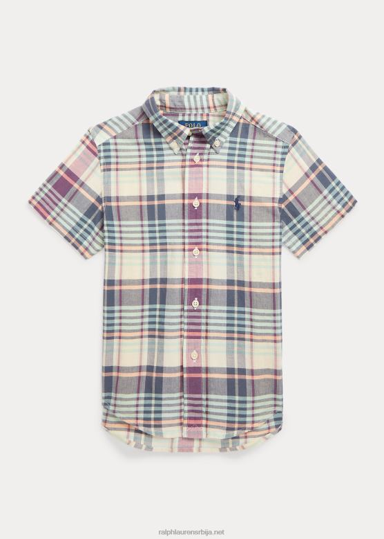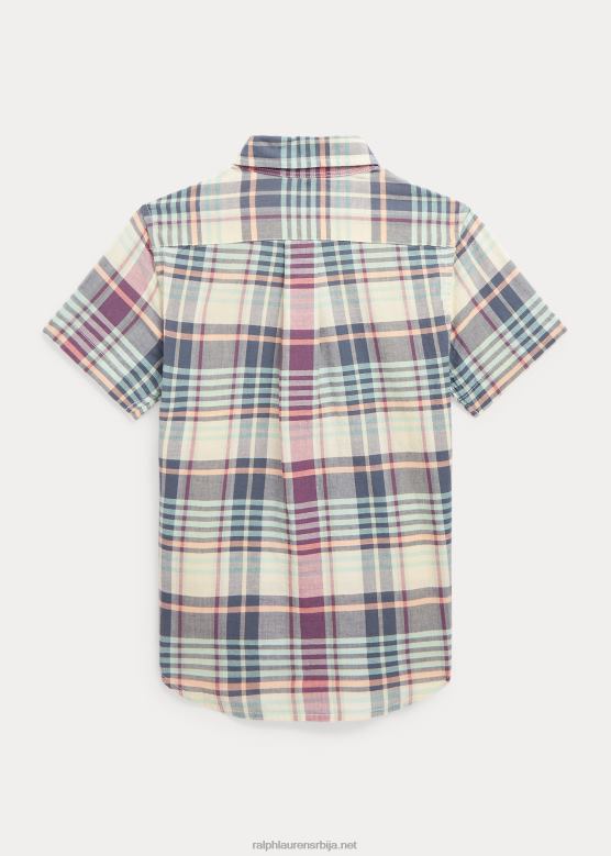 клинци Ralph Lauren Индиго памучна мадрас кошуља кратких рукава V2V445634 крем/плава мулти