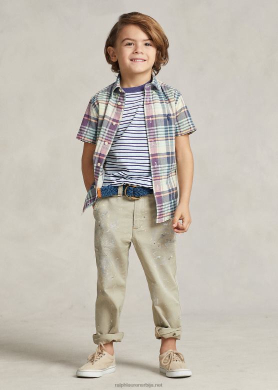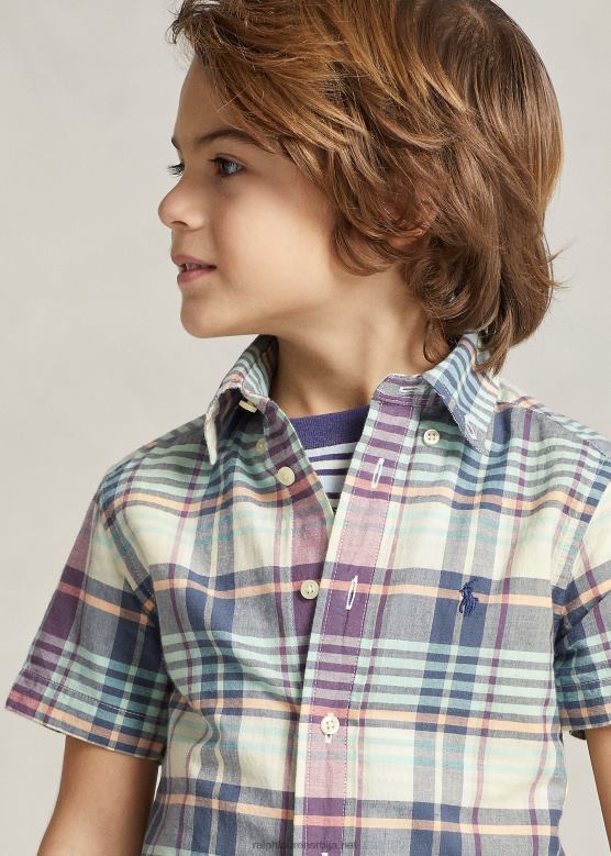 Početna| клинци| одећу| кошуље| клинци Ralph Lauren Индиго памучна мадрас кошуља кратких рукава V2V445634 крем/плава мулти