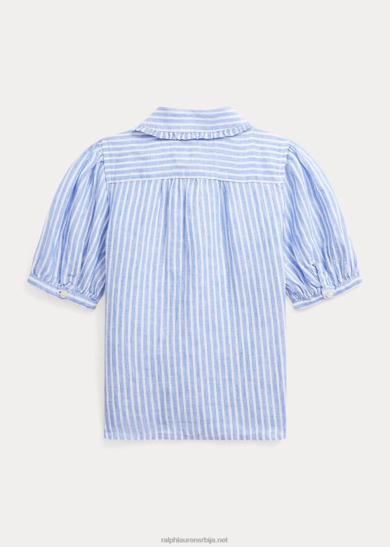 клинци Ralph Lauren пругаста ланена кошуља кратких рукава V2V447364 плаво бели