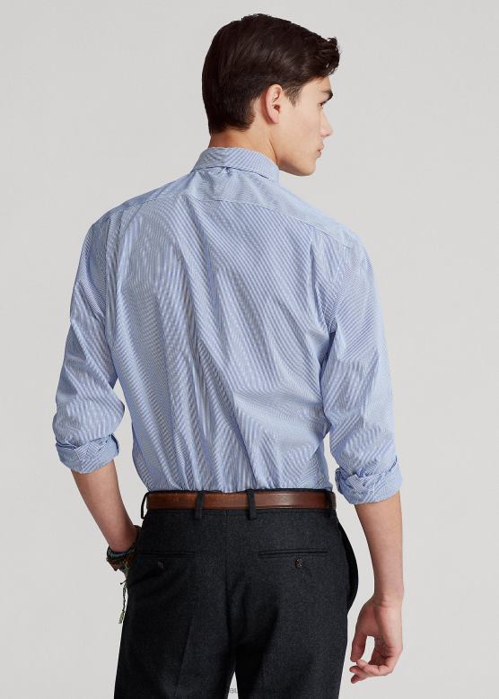 мушкарци Ralph Lauren пругаста кошуља од поплина која се лако негује - све одговара V2V441049 кристално плава/бела