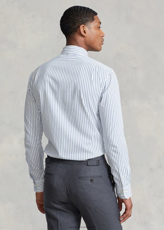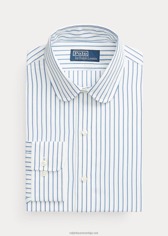 мушкарци Ralph Lauren пругаста кошуља од поплина по мери V2V44828 бело/небо плаво