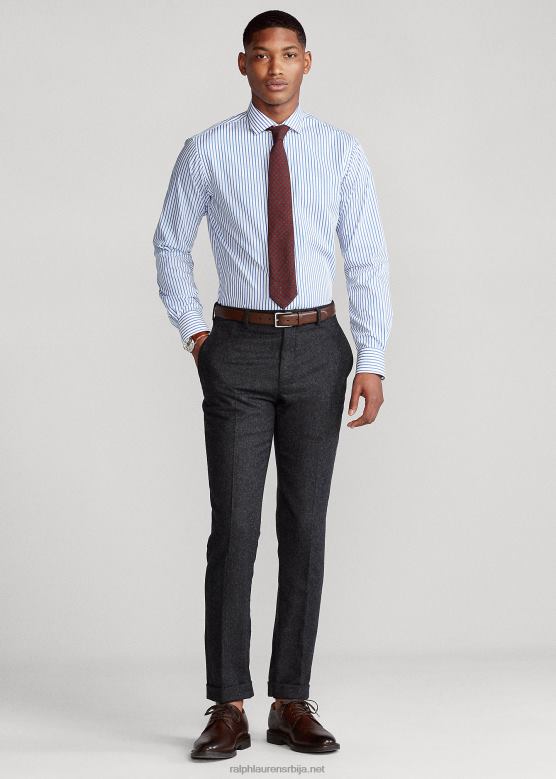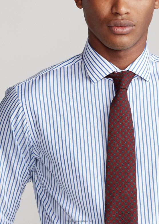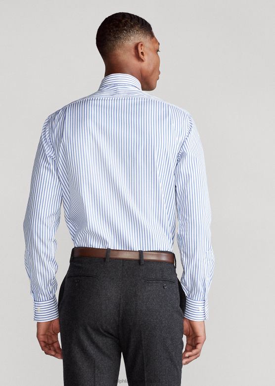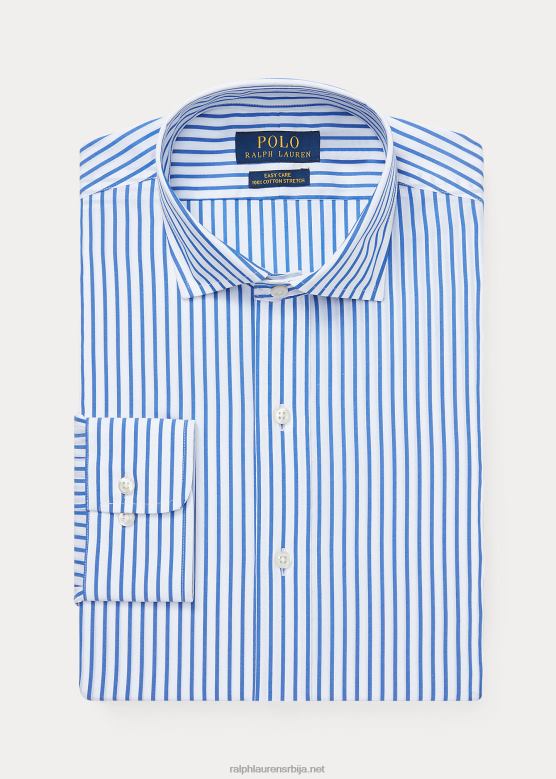 мушкарци Ralph Lauren пругаста кошуља од поплина по мери V2V44876 право плаво/бело