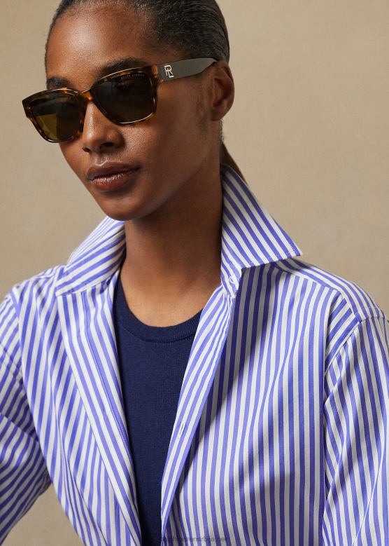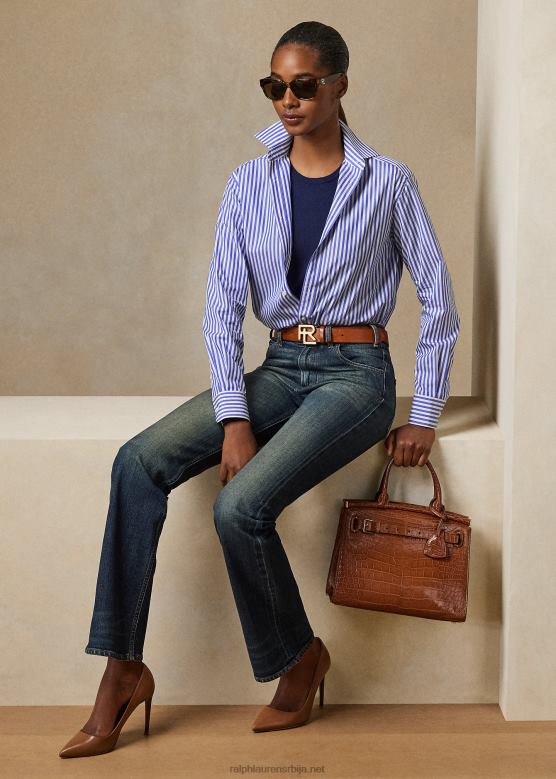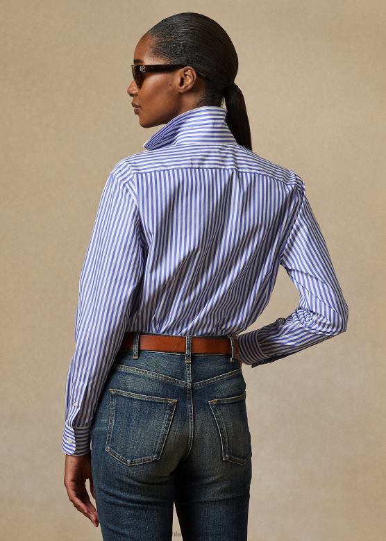Жене Ralph Lauren Адриен пругаста памучна кошуља V2V443458 бела/нимес плава
