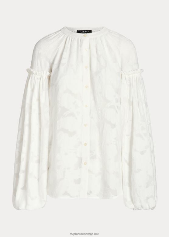<п><п>Романтични поглед на софистициране кошуље, овај стил је дефинисан полупровидним цветним жакардом и таласастим рукавима блузона. исечен за опуштену силуету, украшен је дугмадима угравираним на „лорен ралф лорен“ за стил потписивања.<п>п>