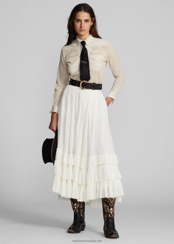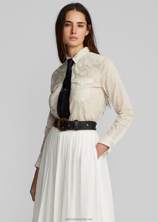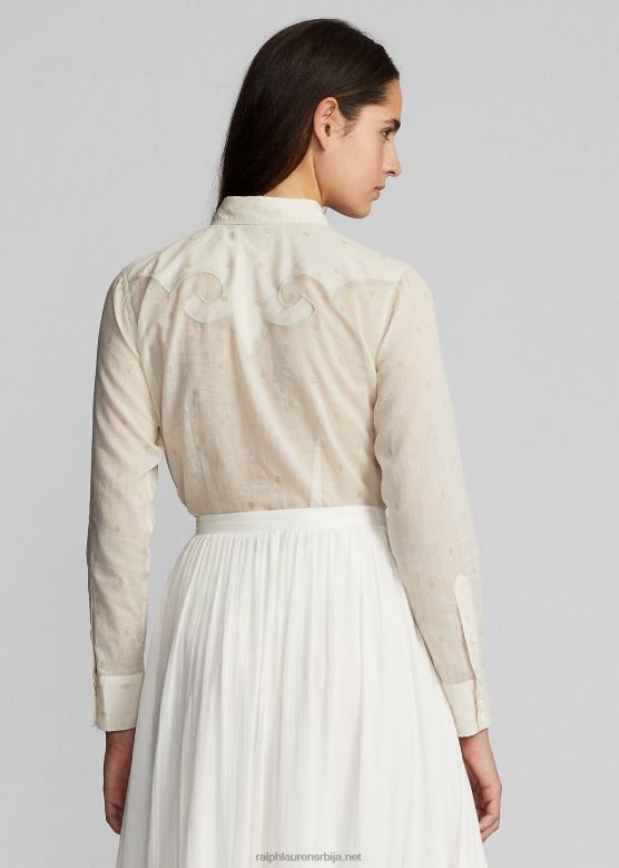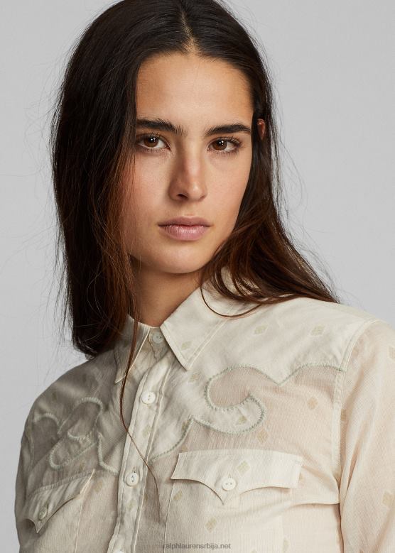 Жене Ralph Lauren везена западњачка кошуља од памучног воала V2V443628 крем/тан