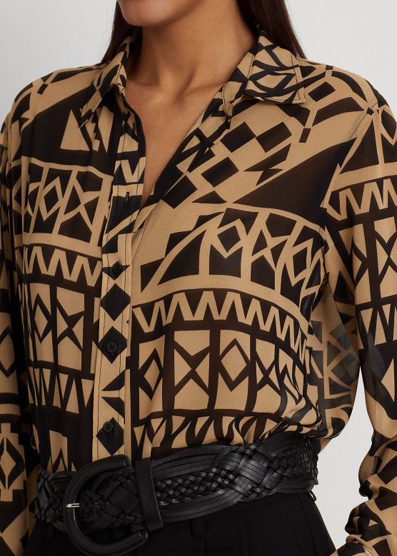 Жене Ralph Lauren кошуља од жоржета са геопринтом V2V444882 тан/црна