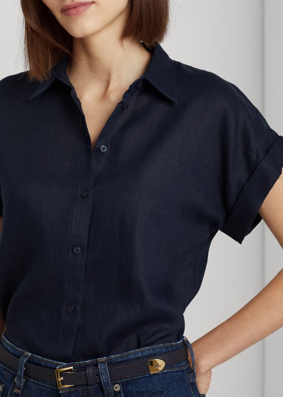 Жене Ralph Lauren ланена кошуља кратких рукава V2V444286 морнарица